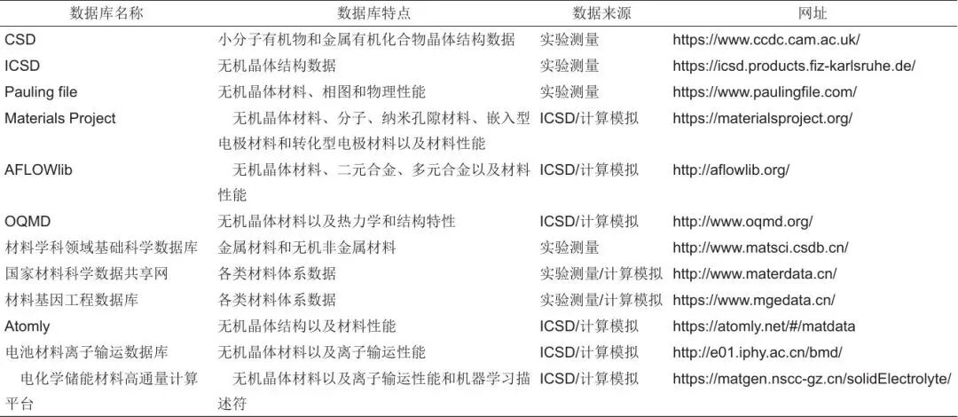针对特定的性能选取合适的描述符有助于建立更精确的模型,从而实现对电化学储能材料性能的精准预测。Sendek等根据原子的位置、质量、电负性和半径计算了与离子导电性相关的20个表征晶体局域原子排列和化学环境的描述符,进而利用逻辑回归算法对锂离子电池固体电解质离子电导率的高低进行分类;赵倩等基于离子传导相关因素的分析,通过整合全局及局域离子传导环境对离子传导快慢的影响,构建了一套分层编码晶体结构基描述符框架,包含组成、结构、传导通道、离子分布和特殊离子5个部分共32个描述符,并采用偏最小二乘分析(PLS)方法成功地预测了立方相Li-Argyrodites的激活能;王爱平等提取了有机溶剂小分子性质、最高占据分子轨道、最低未占据分子轨道和偶极矩以及官能团的原子性质共13个描述符,使用梯度提升决策树(GBDT)预测了溶剂与LiOH分子的结合能,发现磷酸酯溶剂能够显著加快Li-O电池的反应动力学。这些工作都是以目标属性为导向,依靠材料专家对材料体系的认知来选取的描述符。