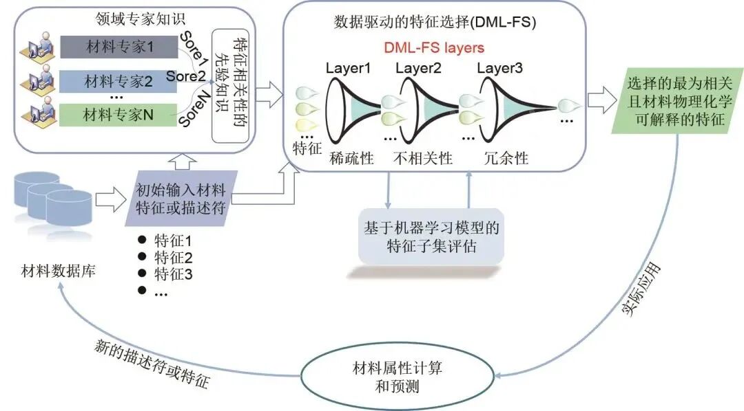 总之,许多结构化数据不仅维数高且样本量小,导致机器学习模型的过拟合,降低了模型的泛化能力。这也是电化学储能材料科学中需要特征工程的重要原因。然而,由于特征选择方法复杂多样,且涉及的超参数和策略也需要手动设置和调整。例如过滤式方法需要设置所选特征的数量和过滤阈值;包裹式方法需要指定子集搜索策略以生成候选特征子集;嵌入式方法需要优化机器学习算法的超参数以获得更好的性能。这将导致没有相关经验的材料专家不易使用这些方法。另外,特征工程仅仅通过特征空间的分布来选择描述符,这可能使得一些关键描述符重要度被弱化,导致学习结果与领域知识不一致。