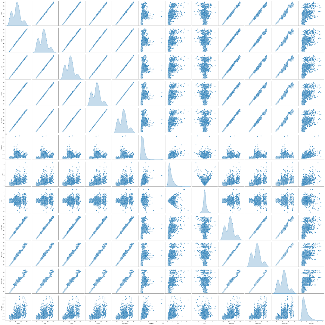 for column in df: print("column nunique NaN" ) print("{0:15} {1:6d} {2:6}" .format( column, df[column].nunique(), (df[column] == -1 ).sum()))column nunique NaN Open 1082 0 High 1083 0 Low 1025 0 Close 1098 0 Adj Close 1173 0 Volume 1250 0 H-L 357 0 O-C 1237 2 3day MA 1240 0 10day MA 1244 0 30day MA 1230 0 Std_dev 1252 0 特征间相关性分析 import seaborn as sns# 一个设置色板的方法 # cmap = sns.diverging_palette(220, 10, as_cmap=True ) sns.heatmap(df.iloc[:df.shape[0 ]].corr() ,annot = True , cmap = 'Blues' )特征值分布 直方图 columns_multi = [x for x in list(df.columns)] df.hist(layout = (3 ,4 ), column = columns_multi)# 一种不常用的调整画布大小的方法 fig=plt.gcf() fig.set_size_inches(20 ,9 ) 密度图 names = columns_multi df.plot(kind='density' , subplots=True , layout=(3 ,4 ), sharex=False ) 特征间的关系 sns.pairplot(df, size=3 , diag_kind="kde" ) 特征重要性 通过多种方式对特征重要性进行评估,将每个特征的特征重要的得分取均值,最后以均值大小排序绘制特征重要性排序图,直观查看特征重要性。 导入相关模块 from sklearn.feature_selection import RFE,RFECV, f_regressionfrom