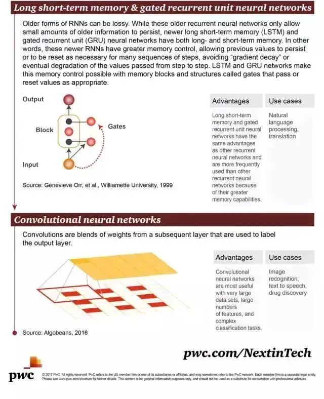 优点:循环神经网络在存在大量有序信息时具有预测能力 8. 长短期记忆(Long short-term memory,LSTM) 与门控循环单元神经网络(gated recurrent unit nerual network):早期的 RNN 形式是会存在损耗的。尽管这些早期循环神经网络只允许留存少量的早期信息,新近的长短期记忆(LSTM)与门控循环单元(GRU)神经网络都有长期与短期的记忆。