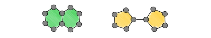 即使是对于三角形这种简单的图结构,有时 WL 算法也无法将它们检测出来,这让试图将信息传递神经网络用于分子图的从业者非常失望。例如,在有机化学中,像环这样的结构非常普遍,并且对分子的性质十分重要(例如,萘等芳香环之所以被称为芳香环,是因为它们主要存在于具有强烈气味的化合物中)。图注:十氢化萘(左)和二环戊基(右)有不同的结构,但我们无法通过 WL 测试区分它们。
