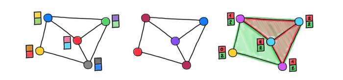 近年来,研究者们已经提出了一些构建表达能力更强的 GNN 模型的方法。例如,WL 层次结构中的高维同构测试(以更高的计算和内存复杂度以及缺乏局域性为代价),将 WL 测试应用于子图集合;位置或结构编码,为图中的节点着色,以这种方式帮助打破迷惑 WL 算法的规律。位置编码目前在 Transformer 模型中是最常见的技术,在 GNN 中也广为使用。虽然存在多种位置编码方法,但具体的选择还取决于目标应用,要求使用者有一定经验。图注:位置编码示例:随机特征、拉普拉斯特征向量(类似于 Transformer 中的正弦曲线)、结构特征(三角形和矩形的个数)。