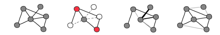 图注:(左)空间形式(球体、平面和双曲面)具有常的正的、零的和负的Ricci曲率,下方为它们与相应的离散的 Forman 曲率的图的类比(团、网格和树)。(中)积流形(圆柱可以被认为是圆和线的乘积)。(右)具有变曲率的异质流形及其图的类比。位置编码可以看作是域的一部分。将图看作连续流形的离散化,可以将节点位置坐标和特征坐标视为同一空间的不同维度。在这种情况下,图可以用来表示由这种嵌入引出的黎曼度规的离散类比,与嵌入相关的谐波能量是狄利克雷能量的非欧扩展,在弦论中称为 Polyakov 泛函。这种能量的梯度流是一个扩散型方程,它演化了位置坐标和特征坐标。在节点的位置上构建图是一种针对特定任务的图重连的形式,它也会在扩散的迭代层中发生变化。图注:通过带有重连的 Beltrami 流对 Cora 图的位置和特征分量进行演化的结果。域的演化可替代图重连。作为一个预处理步骤,扩散方程也可以应用于图的连通性,旨在改善信息流和避免过压缩。Klicpera 等人提出了一种基于个性化 Page Rank 的算法,这是一种图扩散嵌入。在论文“Understanding over-squashing and bottlenecks on graphs via curvature”中,我们分析了这个过程,指出了它在异构设定下的缺陷,并提出了一个受 Ricci 流启发的过程的图重接的替代方案。这样的重连减少了负曲率造成的图瓶颈的影响。Ricci 流是流形的几何演化方程,非常类似于用于黎曼度规的扩散方程,是微分几何中类流行且强大的技术(包括著名的 Poincaré 猜想的证明)。更广义地说,与其将图重连作为预处理步骤,还不如考虑一个演化过程的耦合系统:一个演化特征,另一个演领域。图注:(上)具有负曲率的瓶颈的哑铃形黎曼流形,经过基于曲率的度规演化,变得更圆,瓶颈更不明显。(下)一个类似的基于曲率的图重连过程,减少了瓶颈,使图对消息传递更友好。新的理论框架能让我们走多远,是否能够解决该领域目前尚未解决的问题,仍然是一个悬而未决的问题。这些方法真的会在实践中被使用吗?对于实践者来说,一个关键的问题是,这些方法是否会催生新的更好的架构,或者仍然是一个脱离实际应用的理论工具。Michael Brostein 相信,这个领域的研究将是实用的,通过拓扑和几何工具获得的理论成果将使我们对现有 GNN 架构做出更好的选择。例如,如何约束消息传递函数,以及何时使用这些特定的选择。我们是否已经超越了消息传递的范畴?从广义上讲,数字计算机上的任何计算都是一种消息传递形式。然而,在严格意义上的 GNN 中,消息传递是一个计算概念,它通过将信息从一个节点发送到另一个节点来实现,这是一个内在的离散过程。另一方面,所描述的物理模型以连续的方式在节点之间共享信息(例如,在一个图耦合振荡系统中,一个节点的动力学依赖于它的邻居在每个时间点上的动力学)。在对描述该系统的微分方程进行离散化和数值求解时,所对应的迭代确实是通过消息传递实现的。然而,人们可以假设使用这些物理系统的实际实现或其他计算范式(例如,模拟电子学或光子学)。在数学上,底层的微分方程的解有时可能以封闭形式给出:例如,各向同性扩散方程的解是一个高斯核卷积。在这种情况下,邻居的影响被吸收到核的结构中,没有发生实际的消息传递。