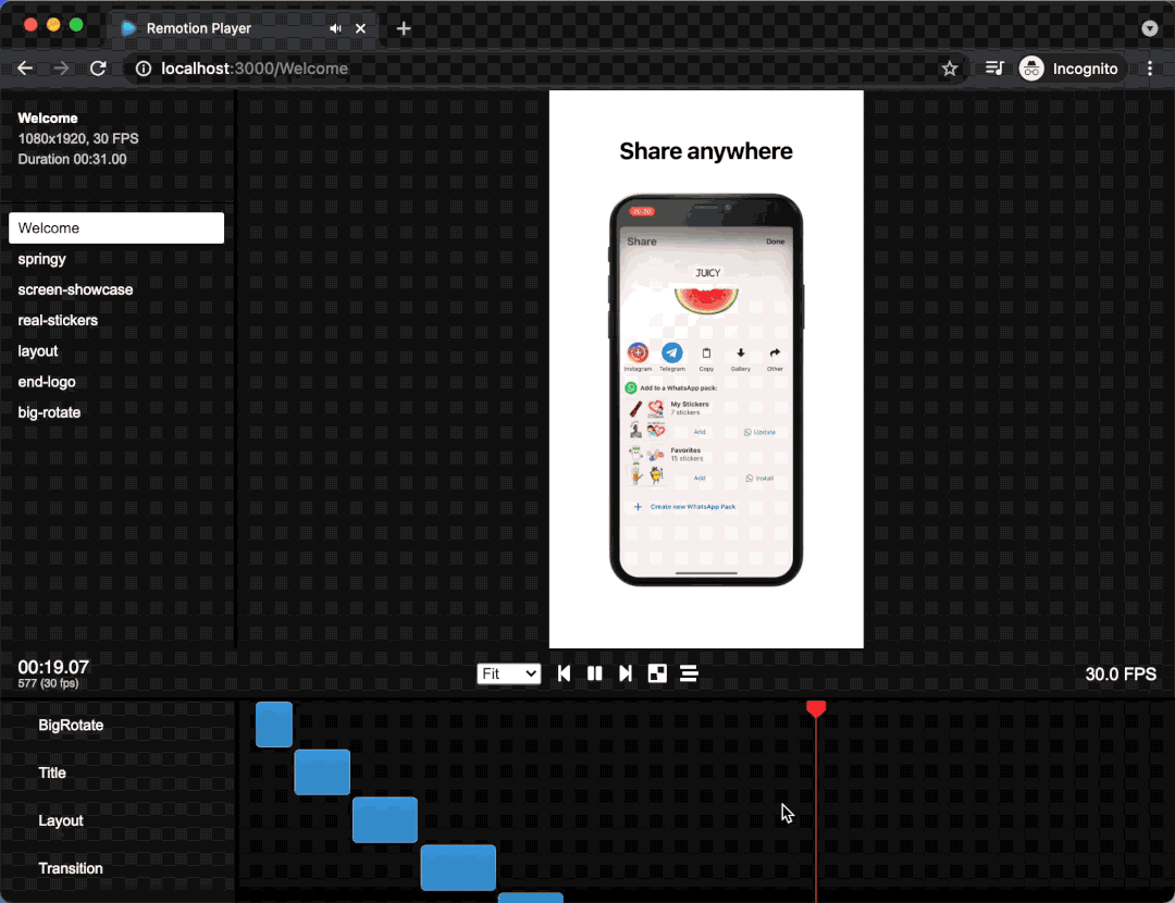 2.5 React 视频库:remotion本周 star 增长数:250+