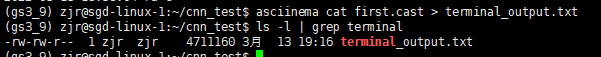 (gs3_9) zjr@sgd-linux-1:~/cnn_test$ asciinema rec first.cast