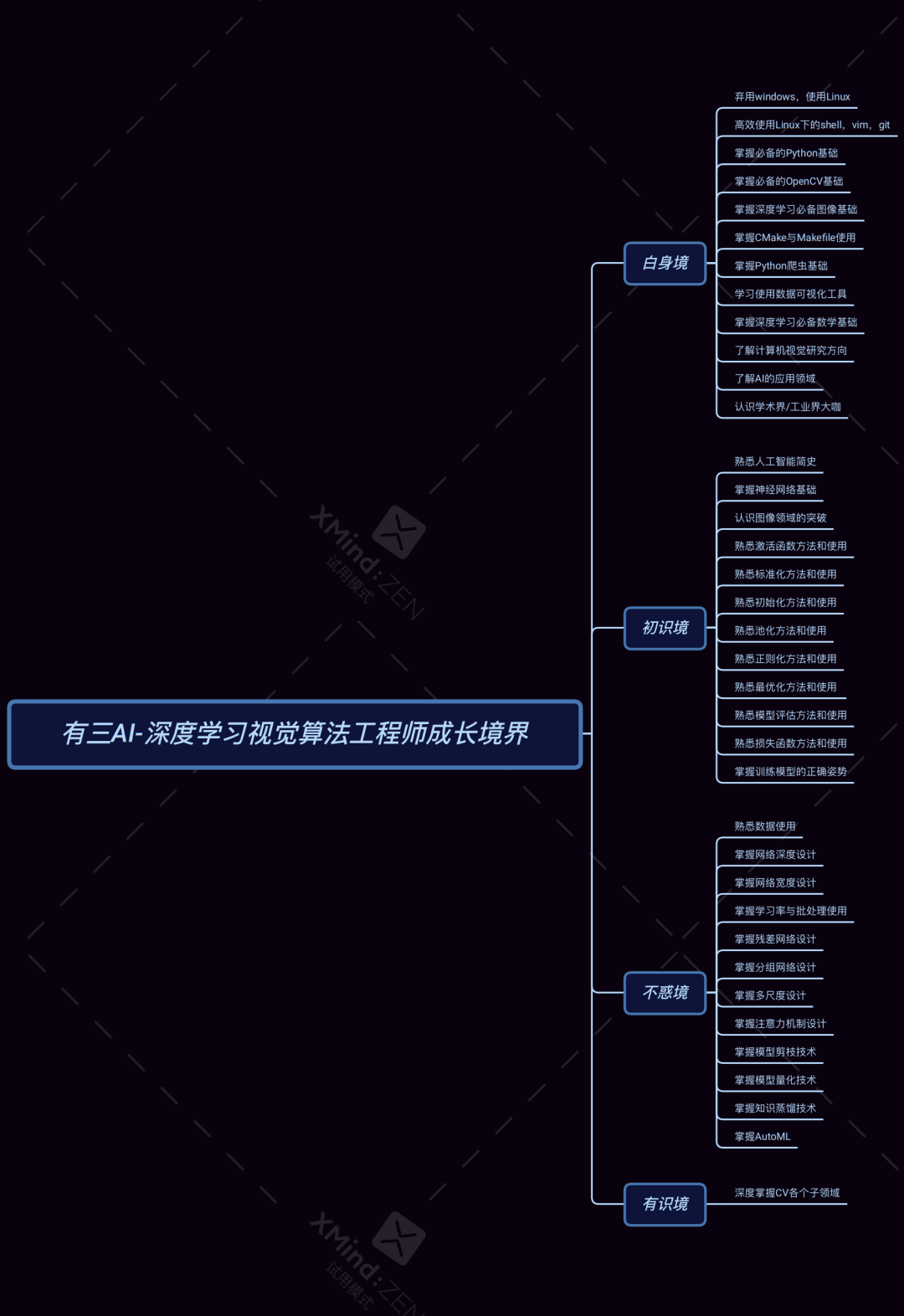 本手册以深度学习视觉算法工程师为例,借鉴广泛采用的评级机制,分为4个大境界,即白身,初识,不惑,有识。每一个境界都由浅入深提供10多篇文章对核心知识点进行梳理和展望。