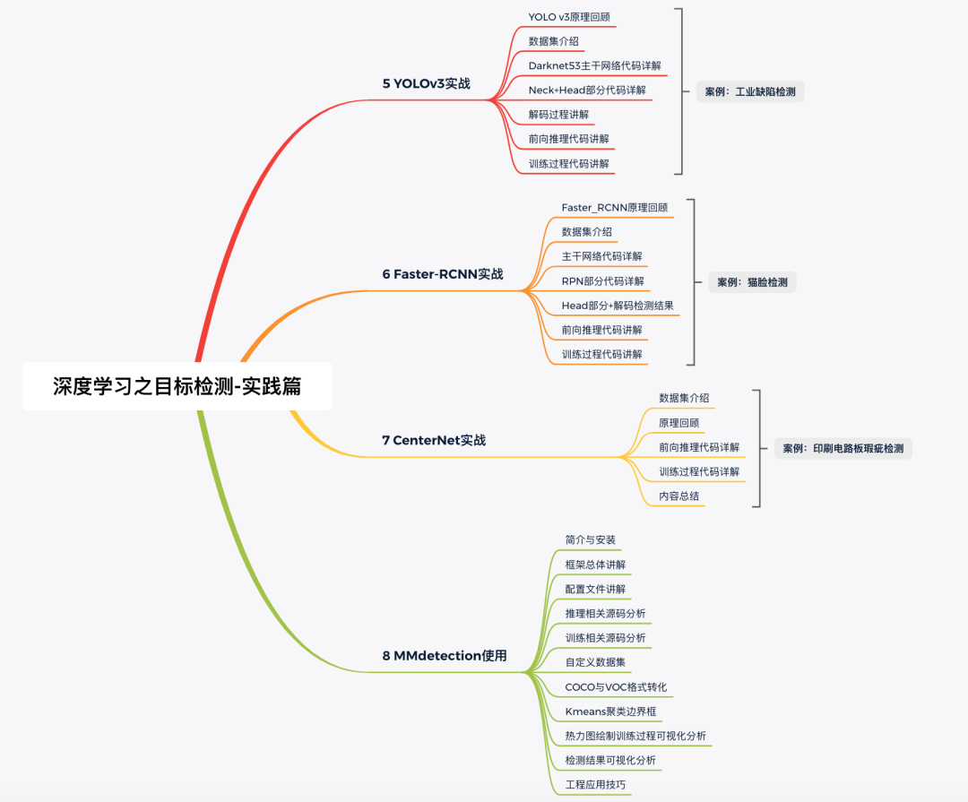 要掌握好一个开源框架,我们要学会从自定义数据读取接口,自定义网络的搭建,模型的训练,模型的可视化,模型的测试与部署等全方位进行掌握。一般官方以MNIST数据接口+预训练模型的常见案例形式是远远不够的,因此我们采用了重新选择了一个任务,提供了13个开源框架的完整学习实践,让大家能够掌握以下内容。