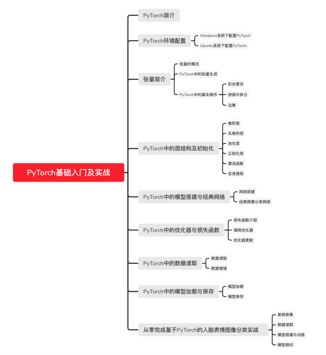 PyTorch中的层结构及模型搭建方法、PyTorch中的损失函数、PyTorch中的优化器、PyTorch中的数据读取、PyTorch中的模型加载与保存、基于PyTorch的人脸表情分类实战等内容。