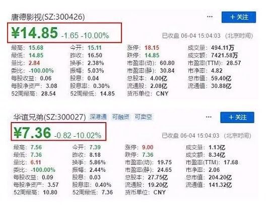 10、传媒板块大跌 唐德影视华谊兄弟双双跌停