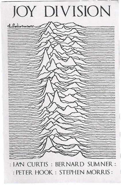 下面的这幅图可能很多读者朋友们都看到过,这是英国摇滚乐队「Joy Division」在1979年发行的其第一张录音室专辑「Unknown Pleasures」的封面,由艺术家「Peter Saville」基于射电脉冲星信号的数据图创作而成,成为了一种流行文化的符号标志。