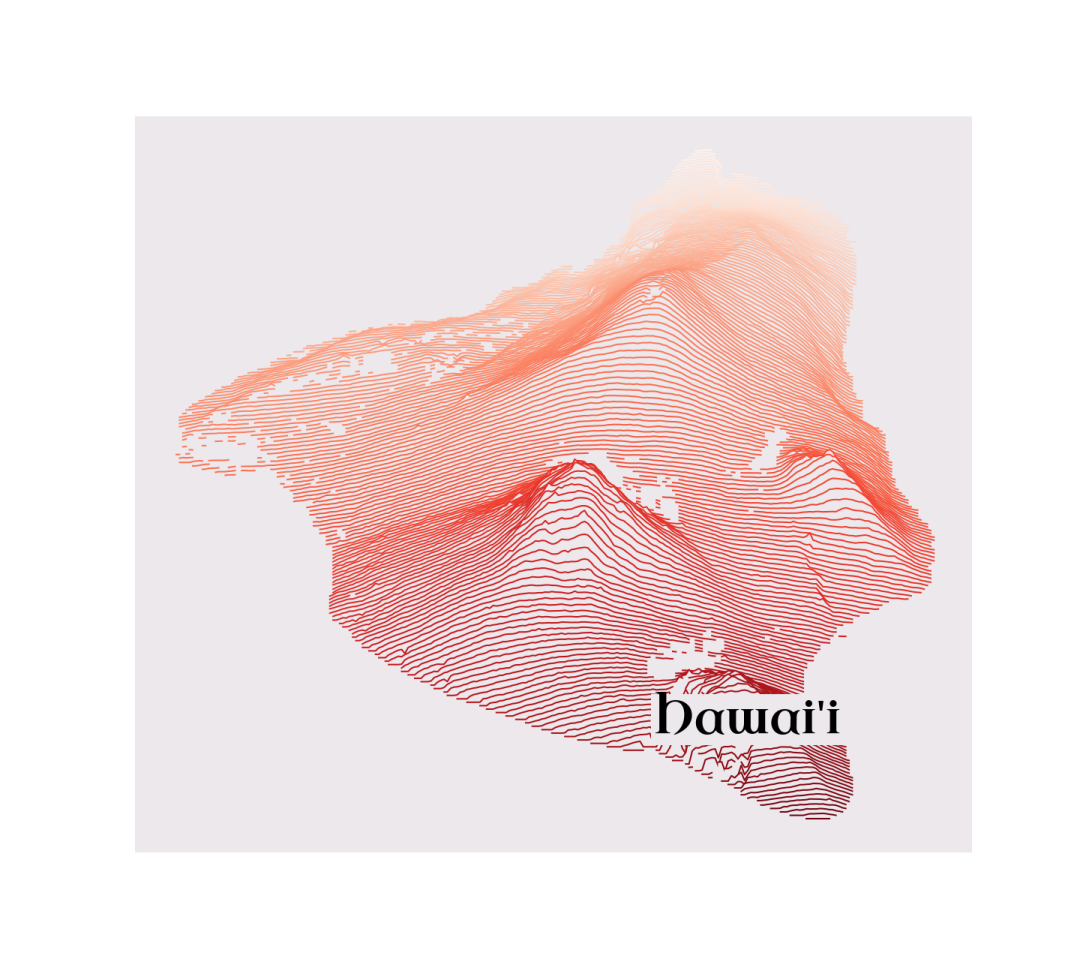 rm.plot_map(values, label="Hawai'i", kind='elevation', line_color=plt.get_cmap('Reds'))
