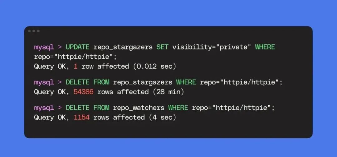 片刻之后,Jakub Roztočil 突然意识到发生了什么,火速回到存储库试图改正,可直到半小时后 GitHub 才允许:这半小时中,GitHub 忙着级联删除 HTTPie 这十年来所有的 Watch 和 Star。