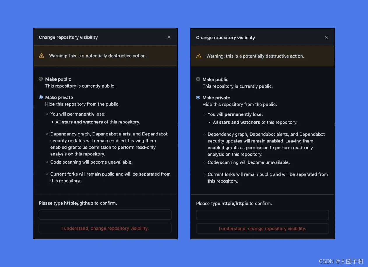 或许有人会问:那将项目再公开不就好了?不错,可问题是 GitHub 有一个“无情”的设定:一旦将存储库设为私有,将永久删除其所有 Watch 和 Star。