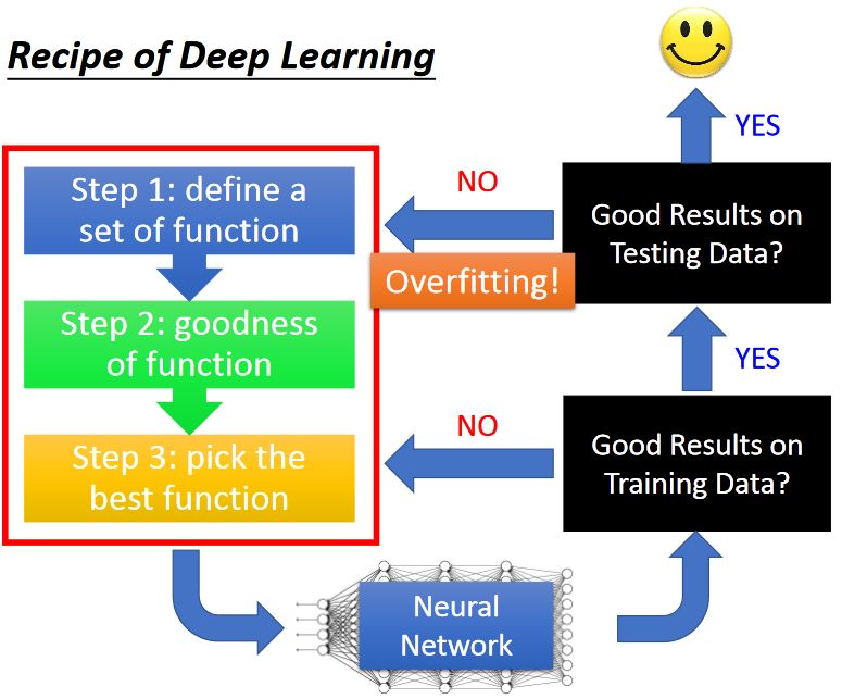 所以在深度学习中,我们的整个训练测试方法如下: