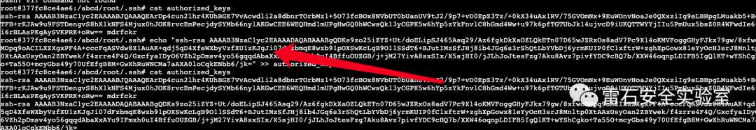 然后/abcd目录就是宿主机的真实主机文件了,我们正常在root下写入公钥文件。