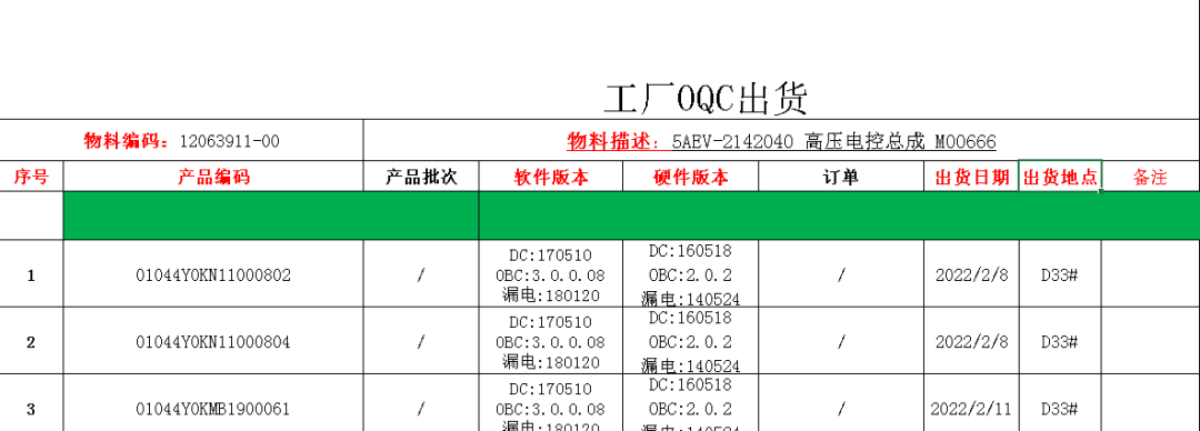 , '条码', '产品批次', '软件版本', '硬件版本', '订单', '出货日期', '出货地点', '备注']