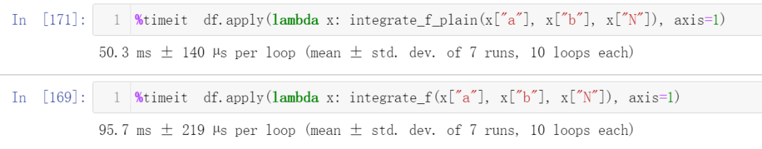 %%cython def f_plain(x): return x * (x - 1) def integrate_f_plain(a, b, N): s = 0 dx = (b - a) / N for i in range(N): s += f_plain(a + i * dx) return s * dx 6、swifterswifter是pandas的插件,可以直接在pandas的数据上操作。Swifter的优化方法检验计算是否可以矢量化或者并行化处理,以提高性能。如常见的apply就可以通过swifter并行处理。