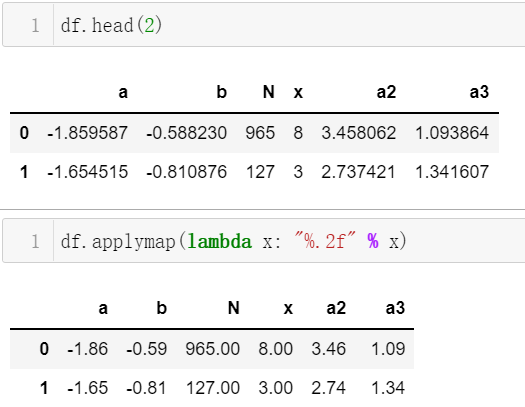 # 列a、列b逐行进行某一函数计算 df['a3' ]=df.apply( lambda row: row['a' ]*row['b' ],axis=1)# 逐个元素保留两位小数 df.applymap(lambda x: "%.2f" % x) 4.3 聚合函数agg优化对于某列将进行聚合后,使用内置的函数比自定义函数效率更高,如下示例速度加速3倍
