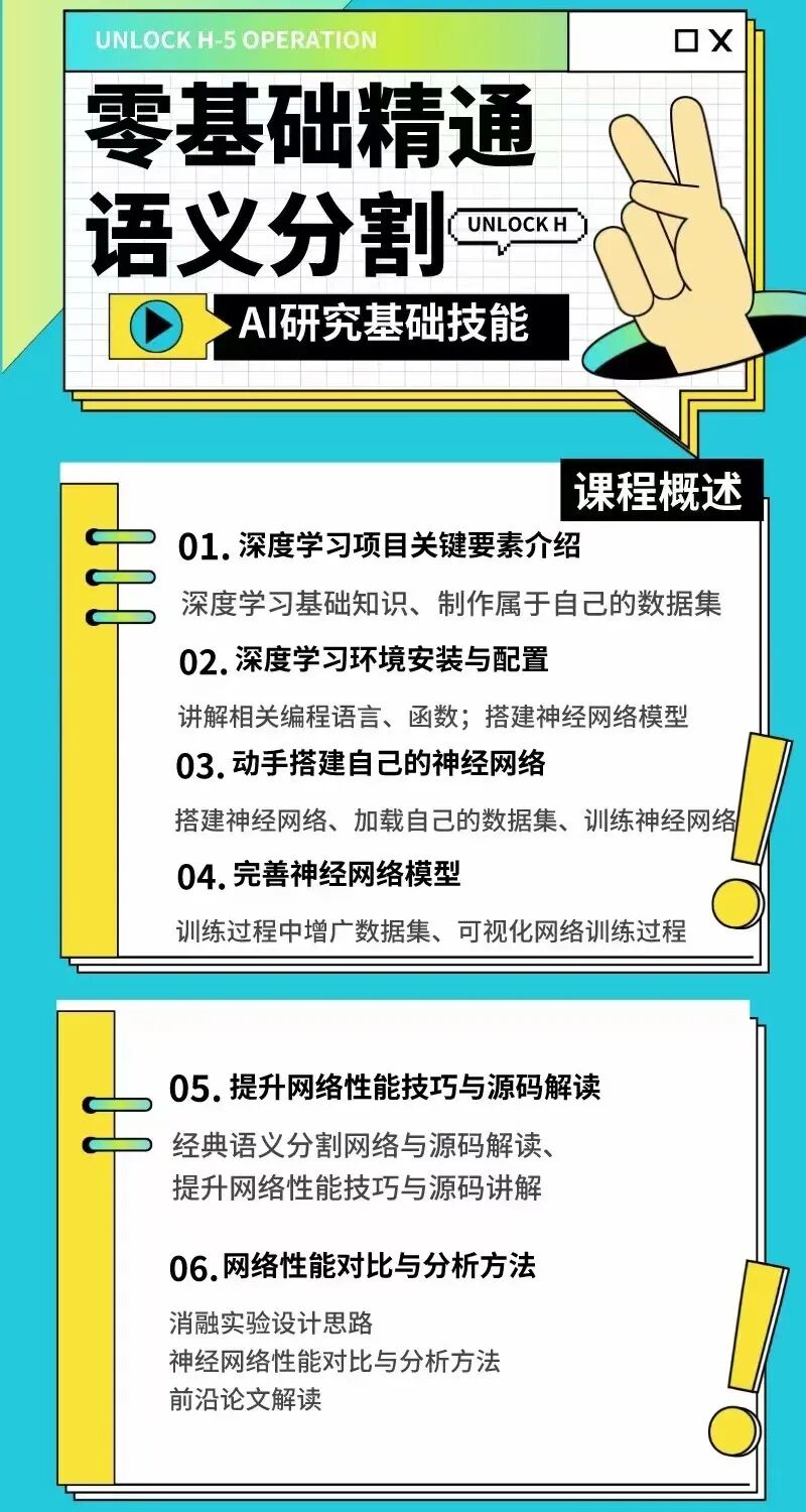对图像中的每一个像素进行分类,目前广泛应用于医学图像与无人驾驶等。环境感知 - 一种多用于自动驾驶领域的图像分割,用于识别和定位环境中的障碍物。例如,在城市场景中分割车辆、行人以及信号灯等。医学影像 - 从医学影像中提取临床相关信息。例如,放射学家可以使用机器学习来增强分析,通过将图像分割成不同的器官、组织类型或疾病症状。这可以减少运行诊断测试所需的时间。随着技术的普及,各家企业的框架逐渐成熟化,图像分割技术的门槛会越来越低。但是由于实际业务的不断丰富和深入,开源框架和工具也已经无法直接满足实际生产和业务需求。那么为了让大家更好地掌握图像分割,小白学视觉团队近期精心筹备了深度学习语义分割直播训练营,用于帮助缺少项目经验,缺少导师指导的本科生和研究生。训练营旨在带领同学们从零开始,逐步完成深度学习语义分割项目,并对项目进行分析。通过训练营,同学们可以从采集数据、环境搭建开始独立完成一个计算机视觉的项目。训练营特色介绍