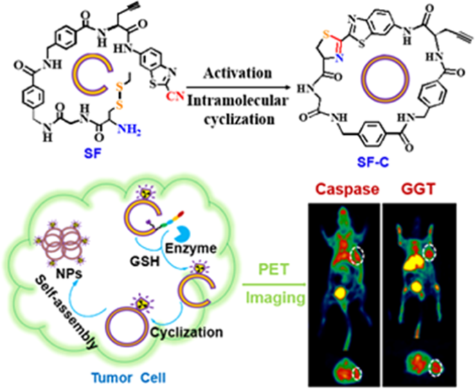 Jianguo Lin. et al. Stimuli-Responsive Macrocyclization Scaffold Allows In Situ SelfAssembly of Radioactive Tracers for Positron Emission Tomography Imaging of Enzyme Activity. Journal of the American Chemical Society. 2022