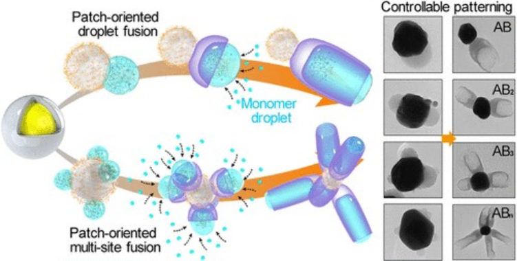 1)研究人员报告了一个组装概念,即软贴片,它可以实现液滴的选择性和定向融合,以生产高度不对称的空心纳米航天器。该方法可以通过操纵液滴融合区域来精确控制空心纳米颗粒的直径。通过控制斑块数量,液滴融合可以获得更多方向,从而增加中空自组装的复杂性。