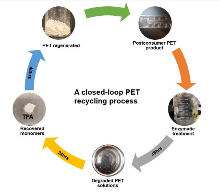 聚对苯二甲酸乙二酯(PET)是一种常见的塑料,它占到了全球固体垃圾废弃物 12% 的比例。利用酶来降解 PET 于 2005 年被第一次报道,截止目前,各项研究中相继报道了 19 种 PET 水解酶,这些酶可以使 PET 被解聚为单体。但是,大部分的 PET 水解酶只在高温的情况下展示出较好的解聚效果,在常温下效果不佳,这使得降解 PET 的运营成本较高,从而导致这些酶在实际生产中的应用受到了一定的阻碍。