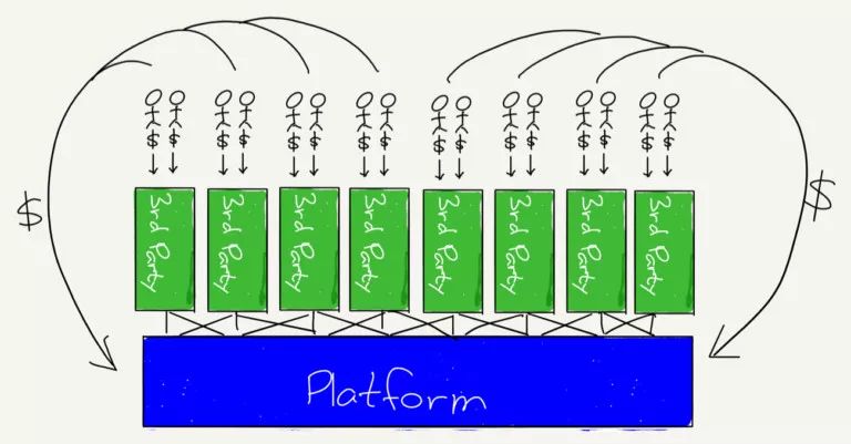 这导致了开发者和平台之间的共生关系:从技术的角度来说,平台提供了开发者构建新体验所需要的基本构件(即应用程序接口,即API),从营销的角度来说,这些新的体验给了消费者一个理由在平台上消费或升级。