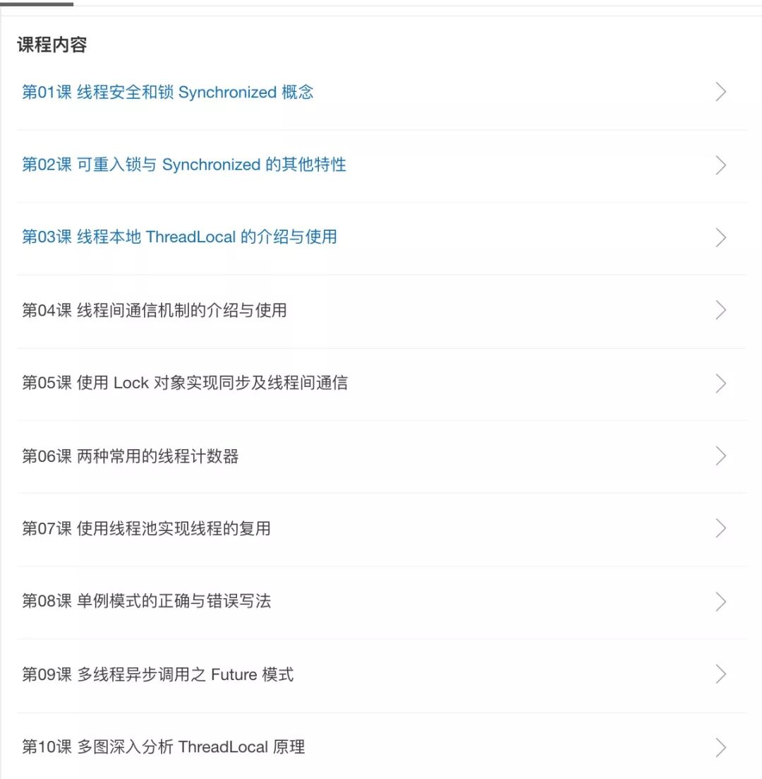 达人课更注重的是一个系列的课程,例如《Java 多线程编程核心技术》这一课程: