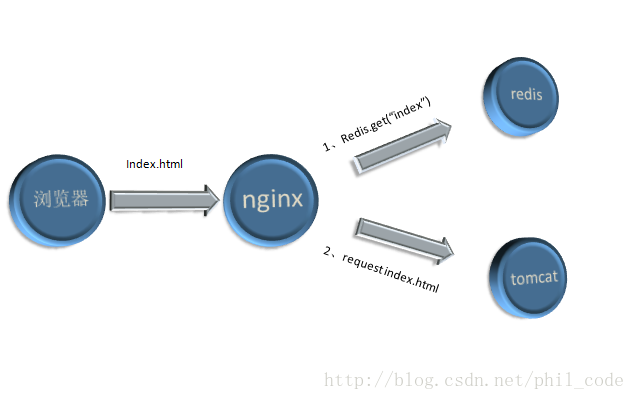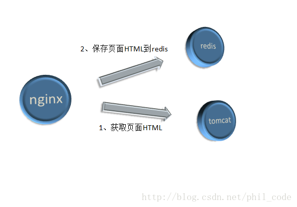 按下图第1和第2步定时执行,nginx lua定时器定时请求tomcat页面的url,返回的页面html保存在redis。