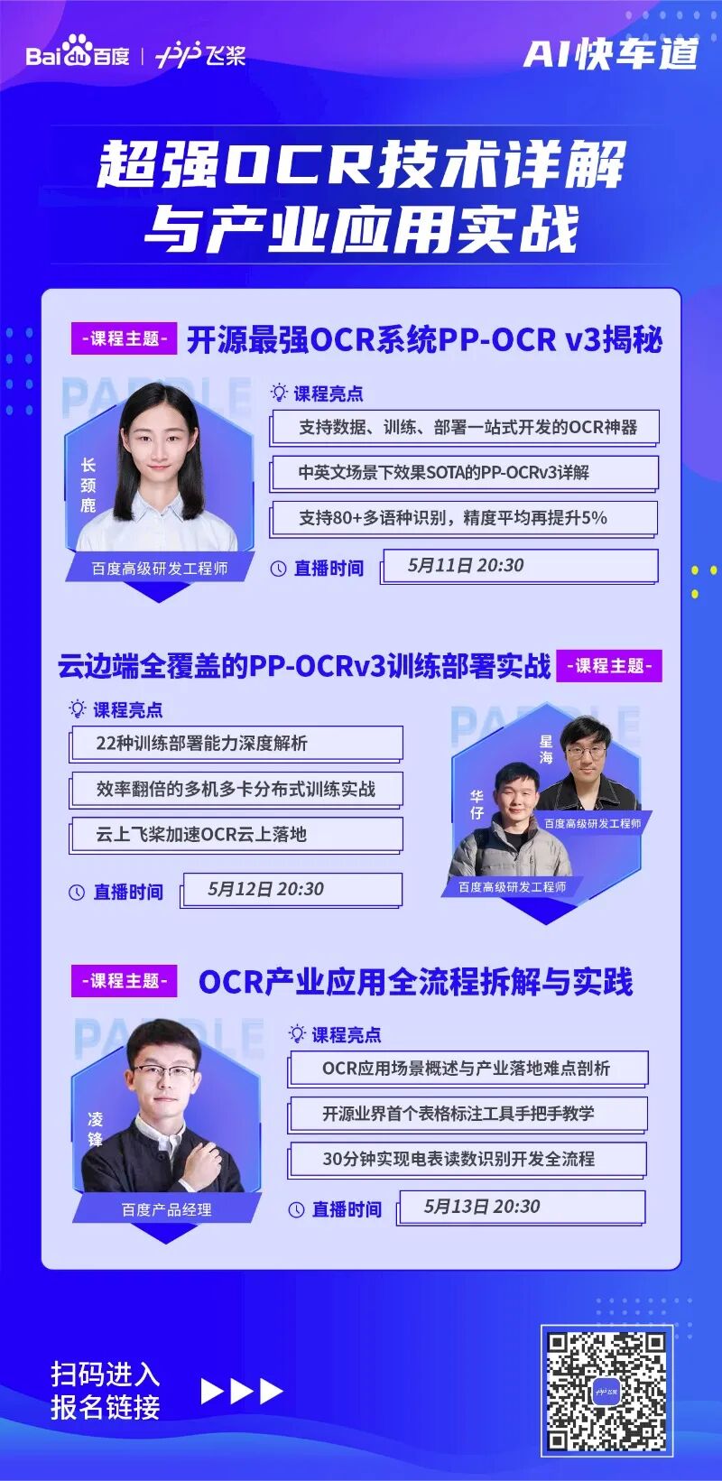 1. 获取5月11-13日每晚20:30《OCR超强技术详解与产业应用实战》的直播课链接