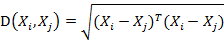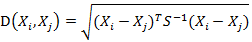 而其中向量Xi与Xj之间的马氏距离定义为: