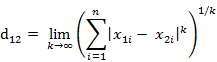 (2)两个n维向量a(x11,x12,…,x1n)与 b(x21,x22,…,x2n)间的切比雪夫距离