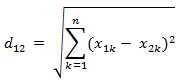 (3)两个n维向量a(x11,x12,…,x1n)与 b(x21,x22,…,x2n)间的欧氏距离:
