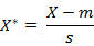 标准化后的值 = ( 标准化前的值 - 分量的均值 ) /分量的标准差