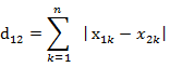 (2)两个n维向量a(x11,x12,…,x1n)与 b(x21,x22,…,x2n)间的曼哈顿距离