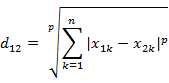 两个n维变量a(x11,x12,…,x1n)与 b(x21,x22,…,x2n)间的闵可夫斯基距离定义为:
