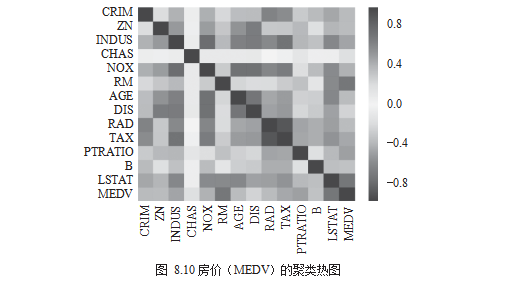 最后,计算相关系数并用聚类热图(Heatmap)来进行视觉呈现,如图 8.10 所示。# compute pearson correlation