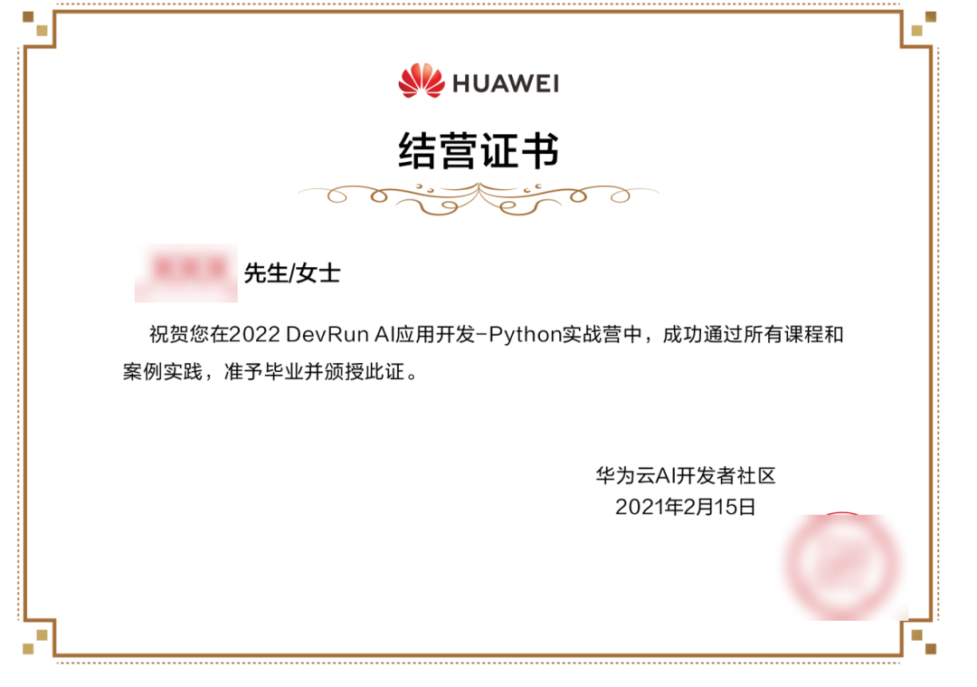 现在报名学习所有课程和案例实操,可获得由华为云AI颁发的【结营证书】,还有机会抽华为畅享10 Plus手机、华为路由器、华为nova mini蓝牙音箱等奖励!
