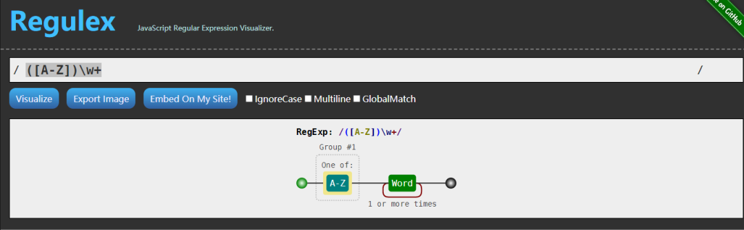 A-Z: 给出的解释是One of: A-Z,意思就是字母A到Z其中之一Word: 1 or more times,1个或者多个字母