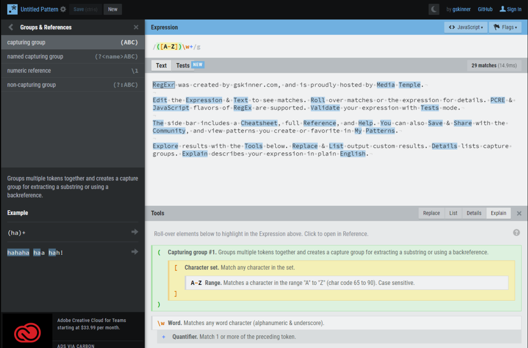 网址:https://regex101.com/