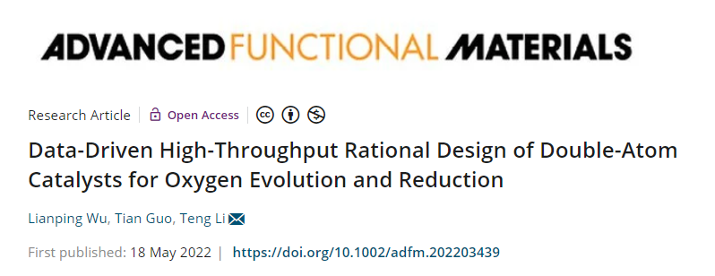 美国马里兰大学李腾教授团队AFM:基于拓扑结构机器学习的双原子催化剂设计