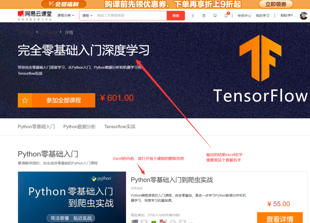 爬取目标网易云课堂套餐的首页和单个课程信息