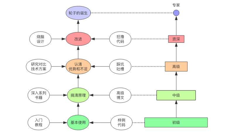 虽然大多数新轮子最终不会被很多人使用,但是「造轮子」无疑是深入理解技术原理的最佳方法。不会造轮子的同学永远只能停在技术表层,难以进行有创造性的工作。在造轮子的初级阶段,确实应该避免将自己的轮子直接应用在公司业务系统中带来维护成本问题,但是到了高级阶段,造轮子的能力就是开发者的核心竞争力,而轮子也将成为公司之间差异化竞争的重要资本。也可以说,要想成为中大型互联网公司的高级工程师或技术专家,必须具备通过造轮子开发出更好工具的实战能力。