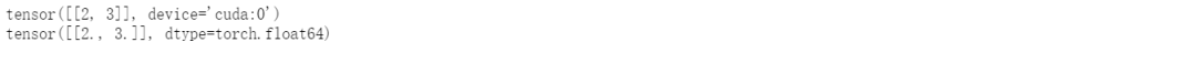 # let us run this cell only if CUDA is available# We will use ``torch.device`` objects to move tensors in and out of GPUif torch.cuda.is_available(): device = torch.device("cuda") # a CUDA device object y = torch.ones_like(x, device=device) # directly create a tensor on GPU x = x.to(device) # or just use strings ``.to("cuda")`` z = x + y print(z) print(z.to("cpu", torch.double)) # ``.to`` can also change dtype together!