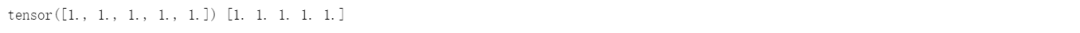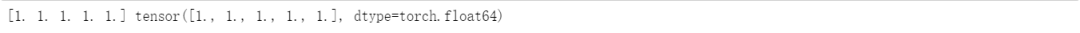 import numpy as npa = np.ones(5)b = torch.from_numpy(a)print(a,b)