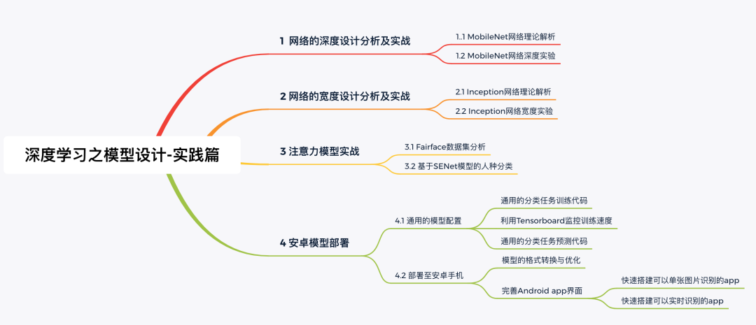 本课程内容已经包含有网络深度与模型性能、网络宽度与模型性能、注意力机制、轻量化网络、安卓部署5个部分,总共时长超过20个小时:
