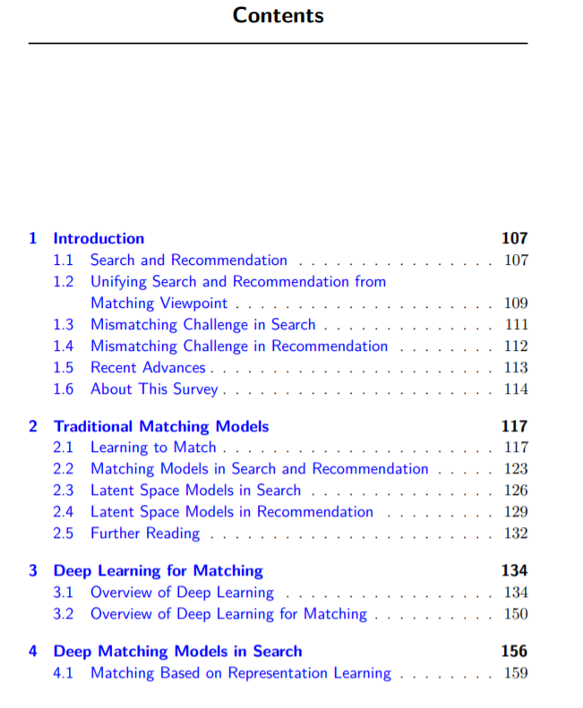 近年来,人们努力开发用于匹配搜索和推荐任务的深度学习技术。随着大量数据的可用性、强大的计算资源和先进的深度学习技术,用于匹配的深度学习现在已经成为最先进的搜索和推荐技术。深度学习方法成功的关键在于它在从数据(例如查询、文档、用户、条目和上下文,特别是原始形式)中学习表示和匹配模式的泛化方面的强大能力。