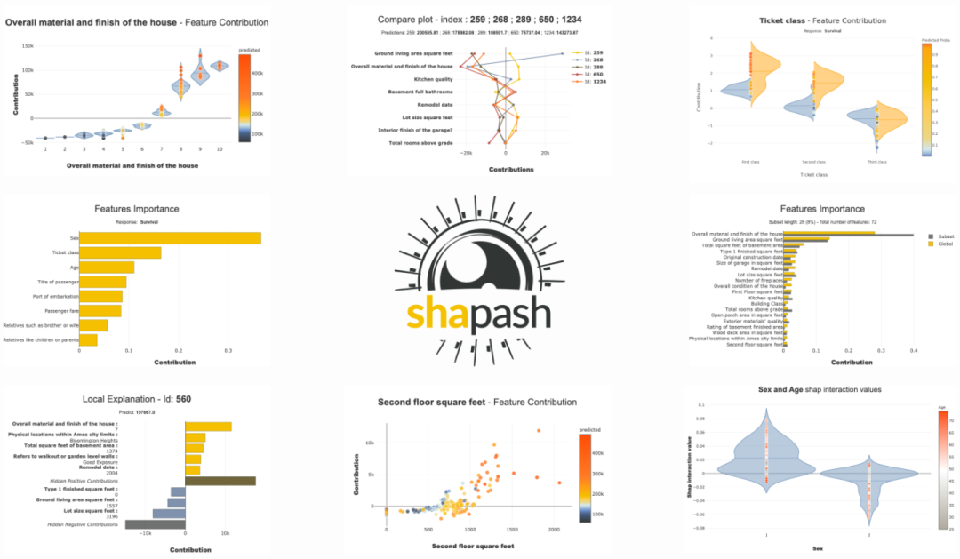 Shapash 适用于大多数 sklearn、lightgbm、xgboost、catboost 模型,并可用于分类和回归任务。它利用 Shap 后端来计算特征的局部贡献度,但是,这可以用其他一些计算局部贡献度的策略代替。数据科学家可以利用 Shapash 解释器对他们的模型进行调查和故障排除,或者部署以提供每个推测的可视化。并且它还可以用于制作可以为最终客户和企业家带来巨大价值的 Web 应用程序。