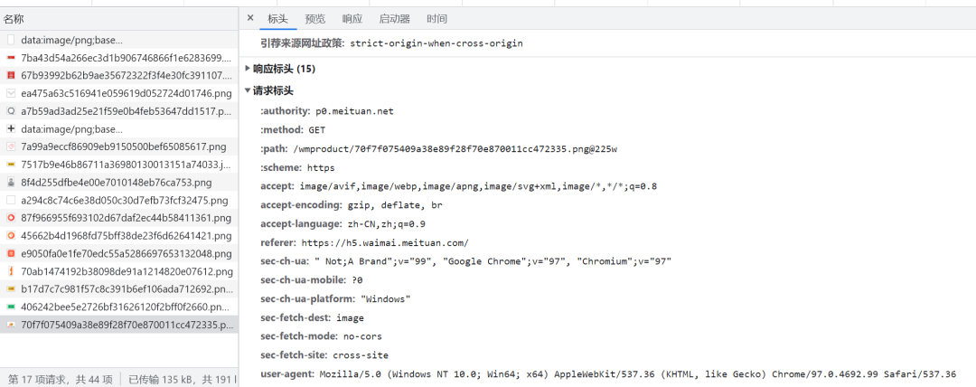 手机页面是竖屏,把窗口收窄能够有更好的浏览体验 人工复制数据的步骤 图片的请求则相当简单,只需要设置请求头,再使用GET请求图片网址即可,而图片网址在目标店铺的数据中,每个菜品都有对应的图片网址。