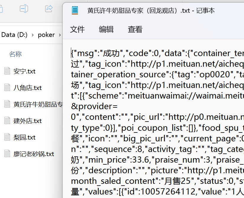 图片网址请求 解决步骤与代码将人工获取的店铺数据存入TXT文件,放在一个目录下,如下图: 人工获取的数据